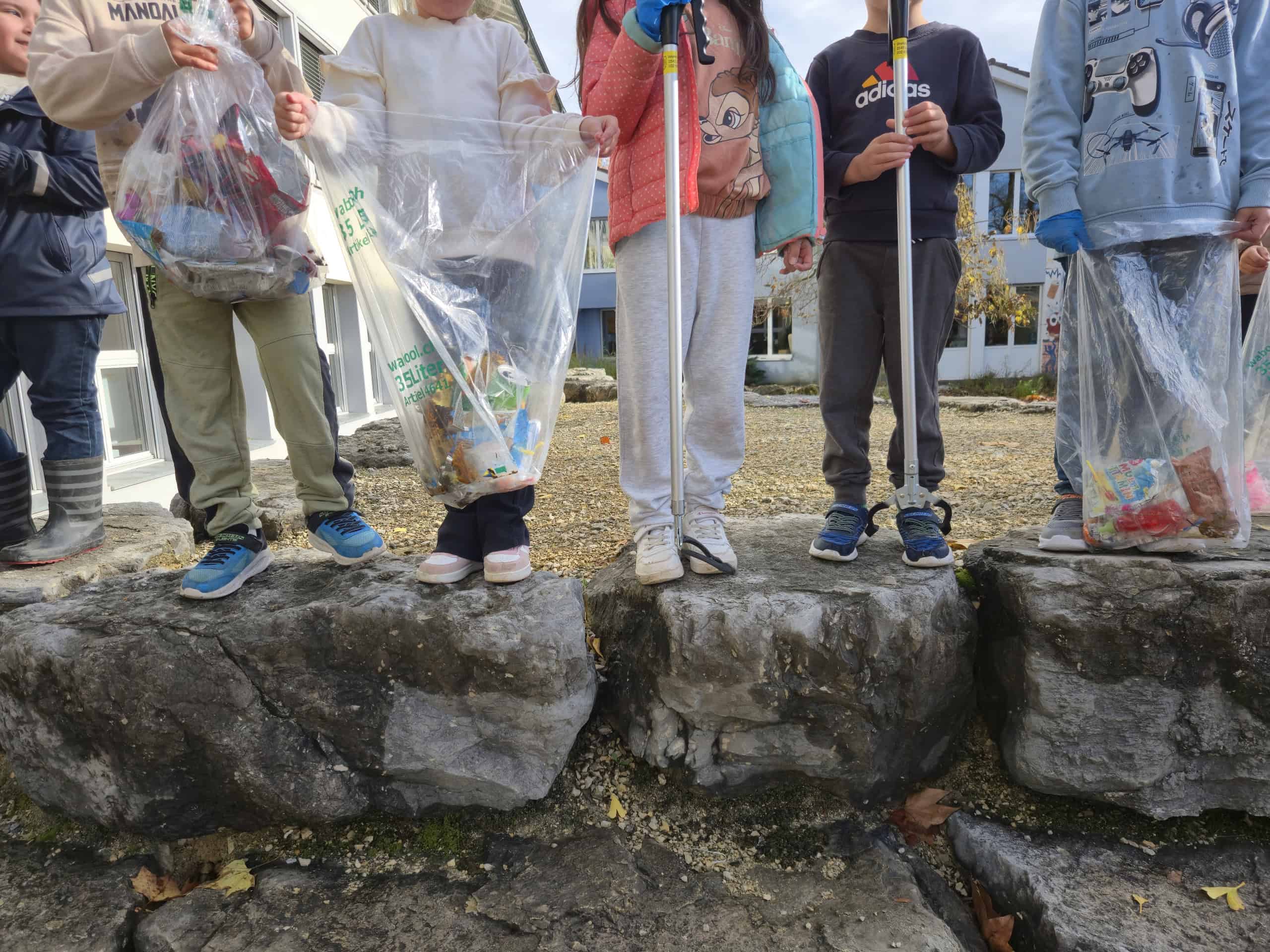 Zweimal pro Woche übernimmt jeweils eine Klasse die Verantwortung für das sogenannte „Fötzele“ – das Einsammeln von Abfall auf dem Pausenplatz und dem Schulgelände.