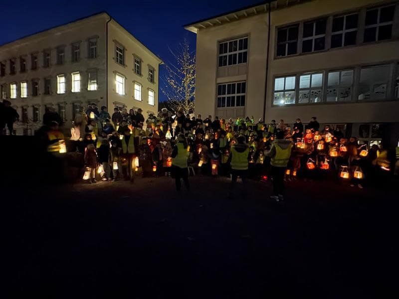 Am Donnerstag, 13. November 2025, fand das Laternenfest der 1. und 2. Klassen statt. Die beiden Jahrgänge starteten an unterschiedlichen Treffpunkten und zogen mit ihren selbst gestalteten Laternen durch das Dorf. Mit warm eingepackten Kindern, leuchtenden Laternen und fröhlichen Liedern entstand eine stimmungsvolle Atmosphäre in der dunklen Herbstnacht.